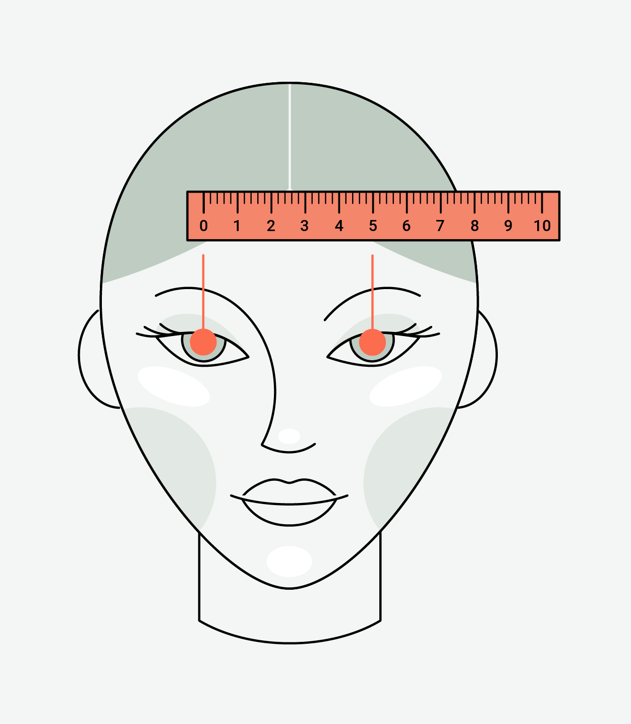 2. Spójrz na wprost i zmierz odległość od środka źrenicy w jednym oku, do środka źrenicy w drugim oku.