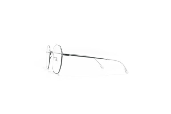 Texel Silver to cienka, srebrna i wielokątna oprawa z proporcjonalnymi, delikatnymi zausznikami w tym samym kolorze. Idealna na każdą wielkość twarzy.